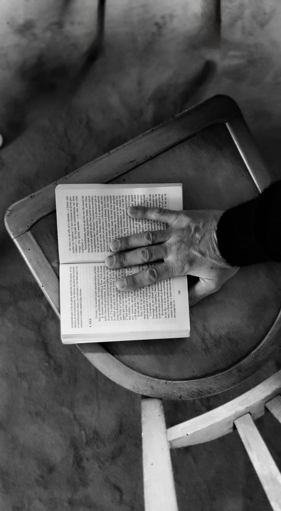Des mots corporels, des sensations de virgule, d’exclamation, de point d’interrogation, de suspension… et du brouillon encore du brouillon, des ratures pleines de mes veines en fureur, des traces, des lignes le long de ma colonne « vertémots ». Les muscles remplis d’encre noire, rouge, les tendons tels les notes de piano de Hania, mon ossature pour Ryan, des R, des R, des R comme leurs prénoms mais aussi comme relecture de ma chorélie, des R comme renaissance, retrouver, réunie, rare, réunion, reliure, rayonnement, rythme… L’écriture ne serait-elle pas une danse ? Les mots, un enchaînement ? Les lettres, une posture ? La ponctuation, un silence, une suspension ? Une page blanche, l’espoir ?